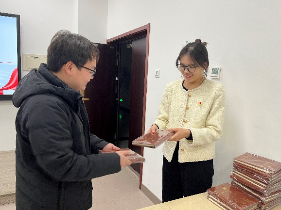 会后,bat365官网登录入口2022级博士生党支部书记李祥园向支部成员分发理论学习笔记本。