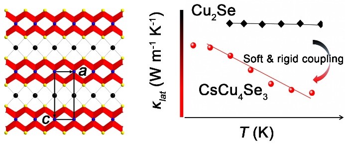 该工作近期被《Journal of the American Chemical Society》杂志接受发表,(Mixed-Valence CsCu4Se3: Large Phonon Anharmonicity Driven by the Hierarchy of the Rigid [(Cu+)4(Se2–)2](Se–) Double Anti-CaF2 Layer and the Soft Cs+ Sublattice. J. Am. Chem. Soc. 2021, DOI: 10.1021/jacs.1c07629)。《Journal of the American Chemical Society》是综合化学领域的世界顶级学术期刊,和《德国应用化学》一起被公认为化学领域最具影响力的期刊,最新SCI影响因子15.419。