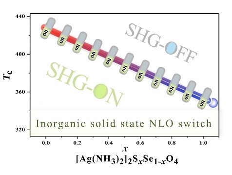 非线性光学(NLO)开关材料可在外场(如:光、热、压力等)刺激下,NLO性质发生“开-关”两种状态的切换,在光开关和光计算等领域具有重要应用,是非线性光学材料研究的一个重要分支。热致非线性光开关固态材料在“开-关”两个状态间的切换主要依赖材料本身的相变温度(Tc),然而,目前大多数固态非线性光学开关材料具有固定的相变温度,这严重限制了其应用温度范围。如何实现对Tc的精确调控具有很大的挑战。