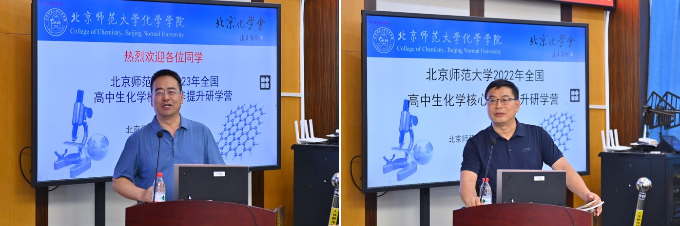 7月24日上午开营仪式上,bat365官网登录入口党委书记卢忠林老师对参加此次研学营的同学表示热烈欢迎,从多个方面介绍了北京师范大学及化学学科,并结合往期举办情况介绍了研学营的特色和理念。孙根班老师代表北京化学会进行发言,介绍了研学营的意义和北京化学会的相关工作,希望营员通次本次研学营能有所收获。本次研学营坚持“理论与实验相结合,基础与前沿相结合,知识与思维相结合”,共包括5天的课程。