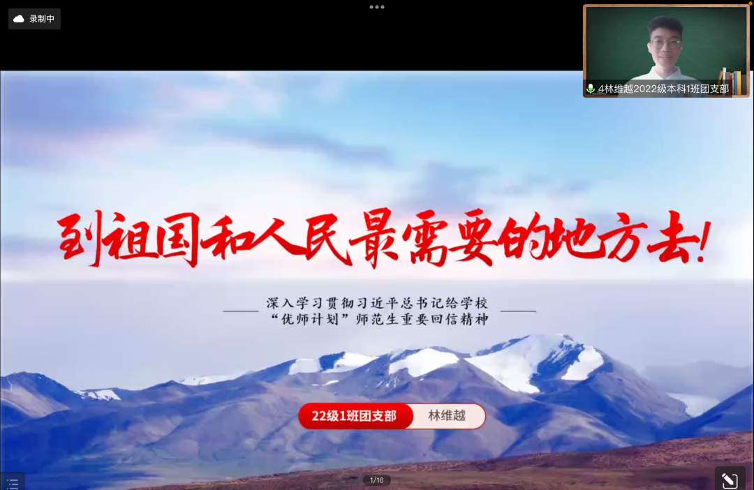 我是bat365官网登录入口2022级本科1班团支部的团支书林维越,今天我要讲的微团课主题是“深入学习贯彻习近平总书记给学校‘优师计划’师范生重要回信精神”。