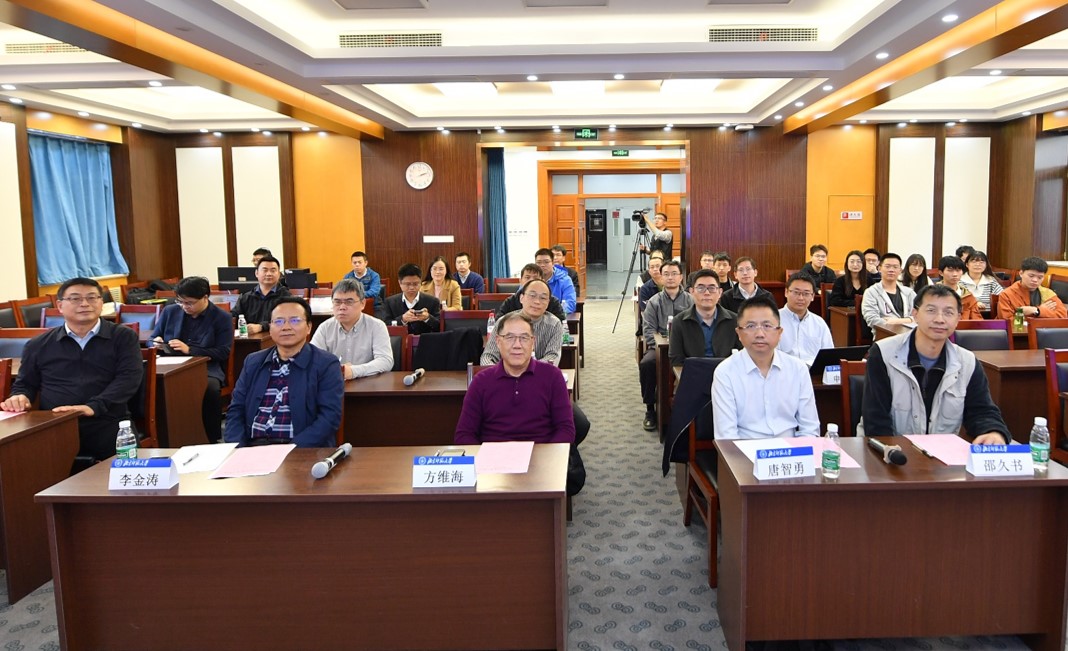 学术成果报告交流环节由bat365官网登录入口副院长崔刚龙教授主持,报告人袁骁、王涵、钟海政、任佳骏分别做题为“Quantum simulation with hybrid tensor networks”“ 深度势能预训练模型”“ 机器学习辅助的蓝光QLED器件分析”“ 电子-声子耦合问题的张量网络方法及其应用”主旨报告。与会专家与报告人进行了充分交流,现场气氛热烈。